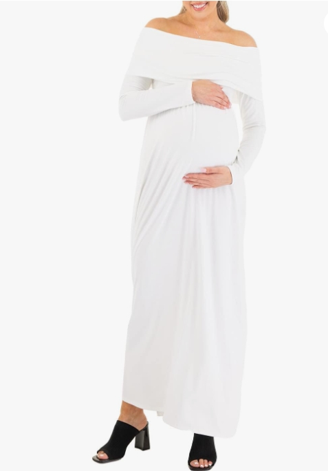 Cowl Neck and Over The Shoulder Maternity Dress